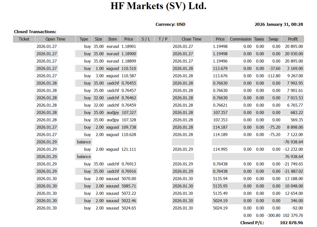+102,078 USD | From Dollar Distrust to Dollar Reversal — The Moment Market Sentiment Shifted ✅ Trade Results (Jan 26–Jan 30)📊 Weekly Total: +102,078 USD A turbulent week where we didn’t fight the waves — we rode them. There were losing trades.But losses were cut quickly and remained small.Winning trades were allowed to run. This […]