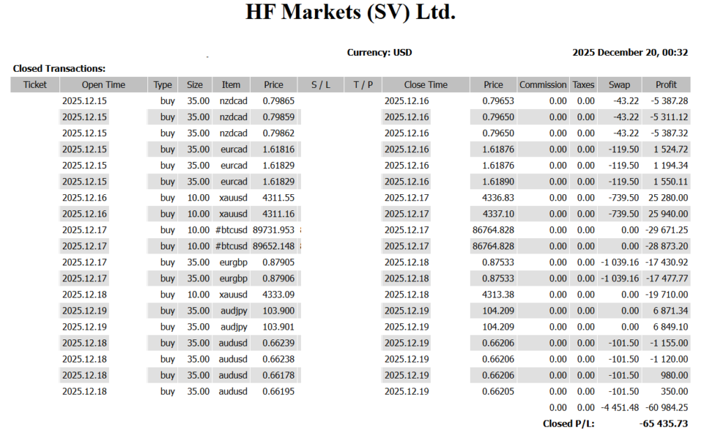 ✅ -65,435 USD Even After a Rate Hike, the Yen Weakened — What the BOJ Meeting Revealed About the Yen’s Fragility, and Where the Next Edge Lies — Trading Results (Dec 15–Dec 19) 📊 Weekly Total: -65,435 USD 📊 FX Market Review Notes Scope: Price action review for the week of Dec 15 / Strategic […]